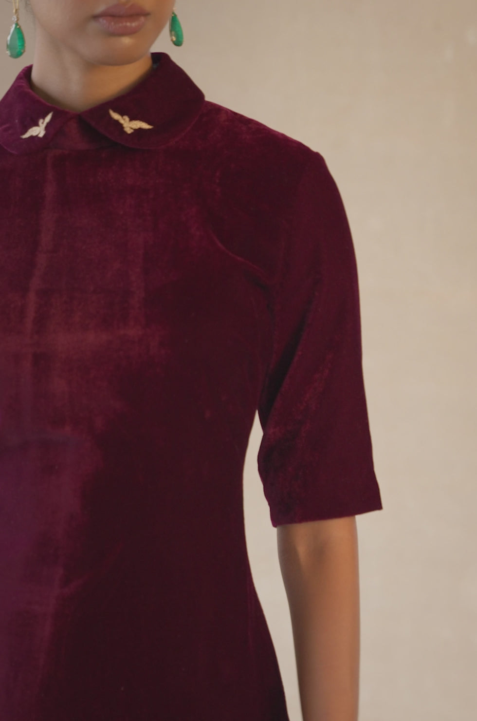 Cute bird embroidery on the collar adds a unique element of interest.